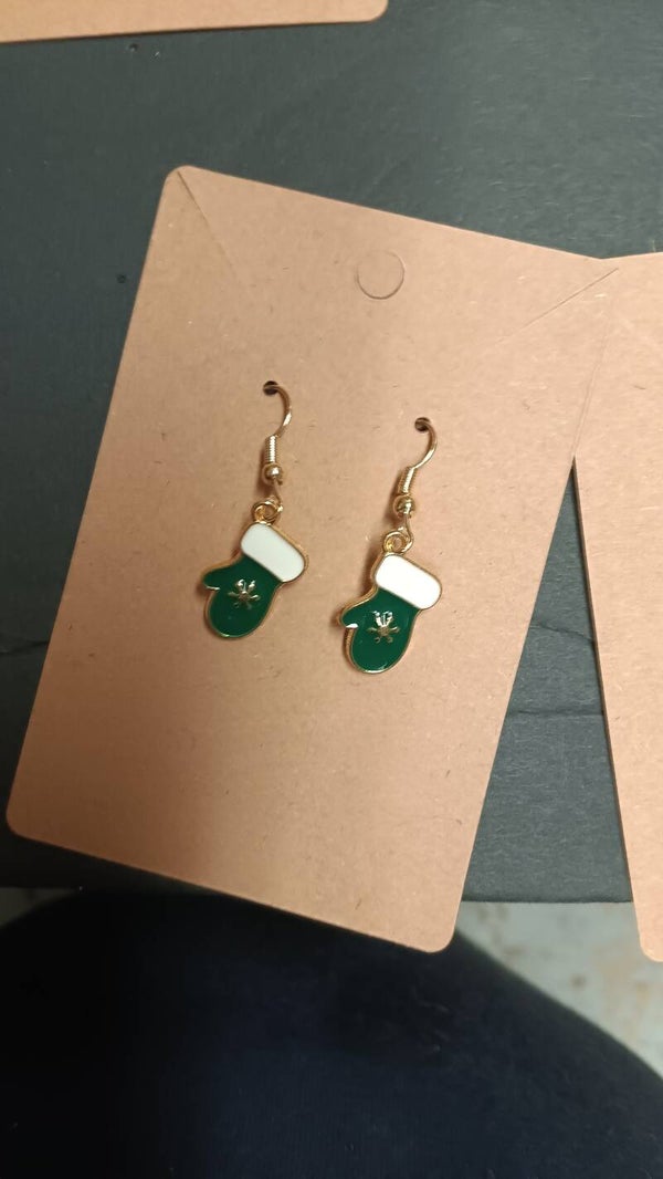 “Celebrate the season with a touch of handmade magic. These festive wreath earrings, complete with red bows and snowy details, are designed to bring joy, warmth, and a little holiday sparkle to your day.”