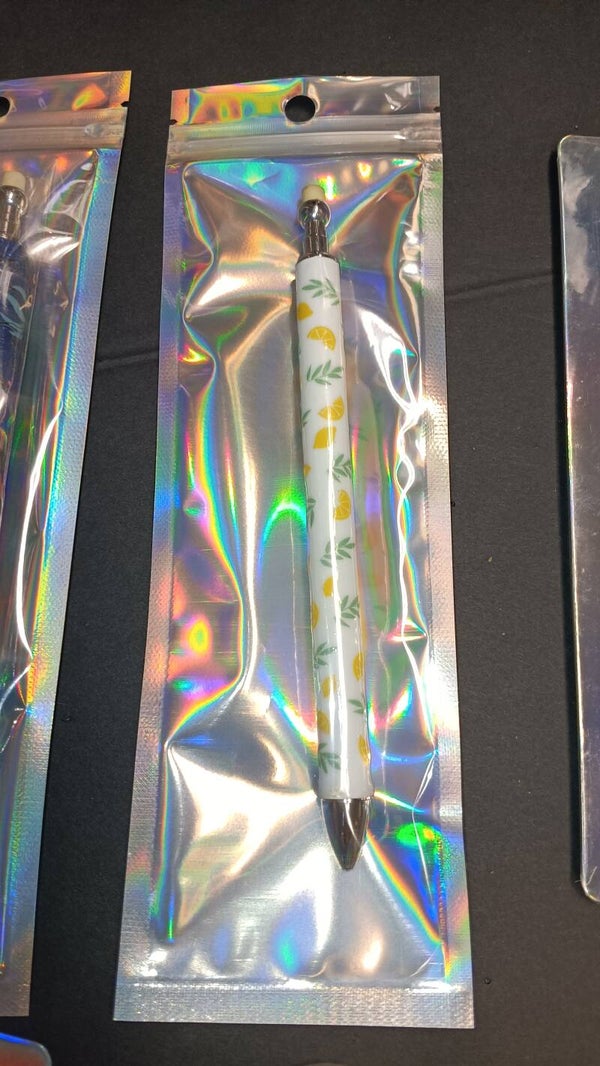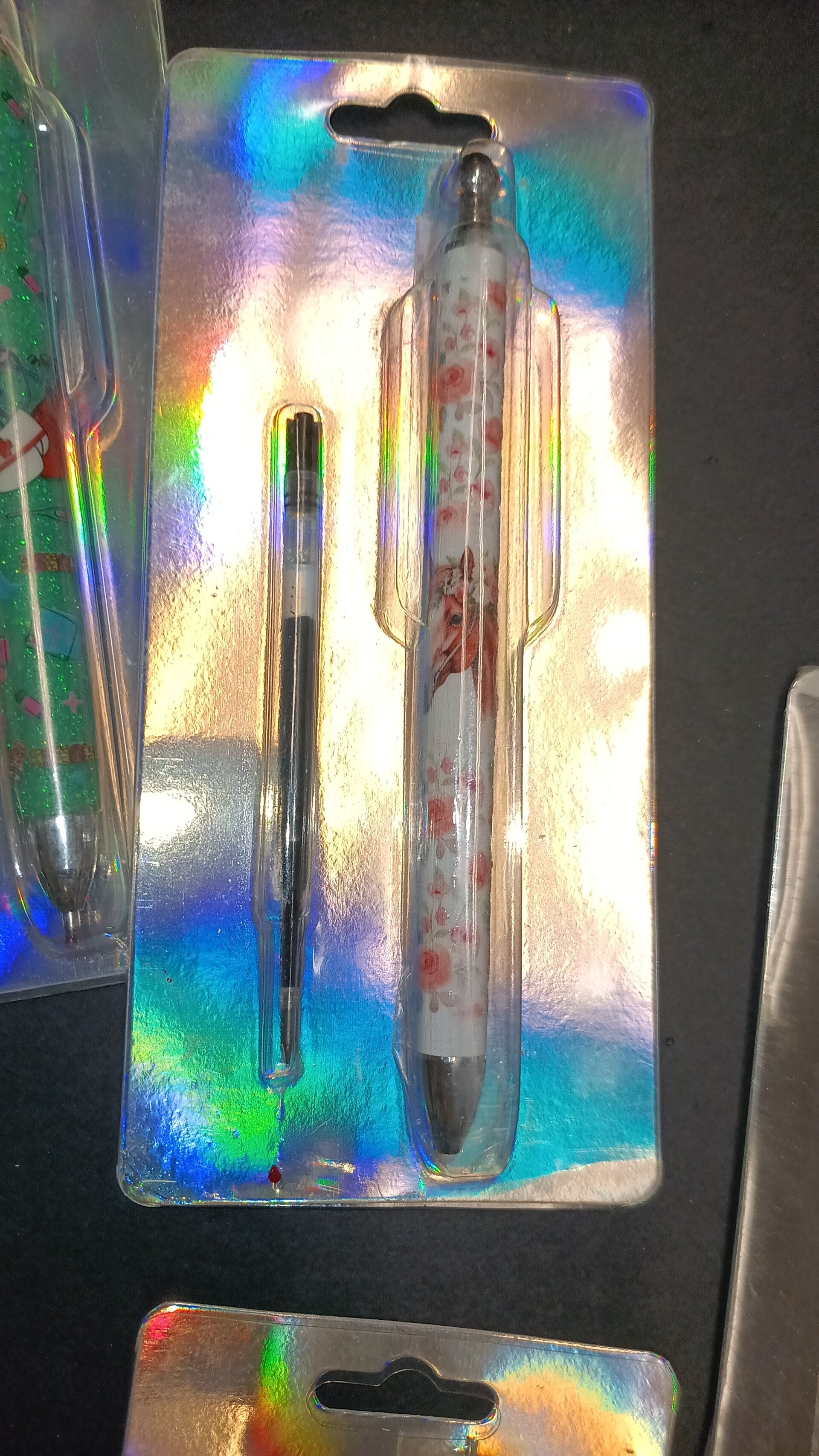 wrapped pens with a removeable sleeve that can be exchsnged with different designs. o