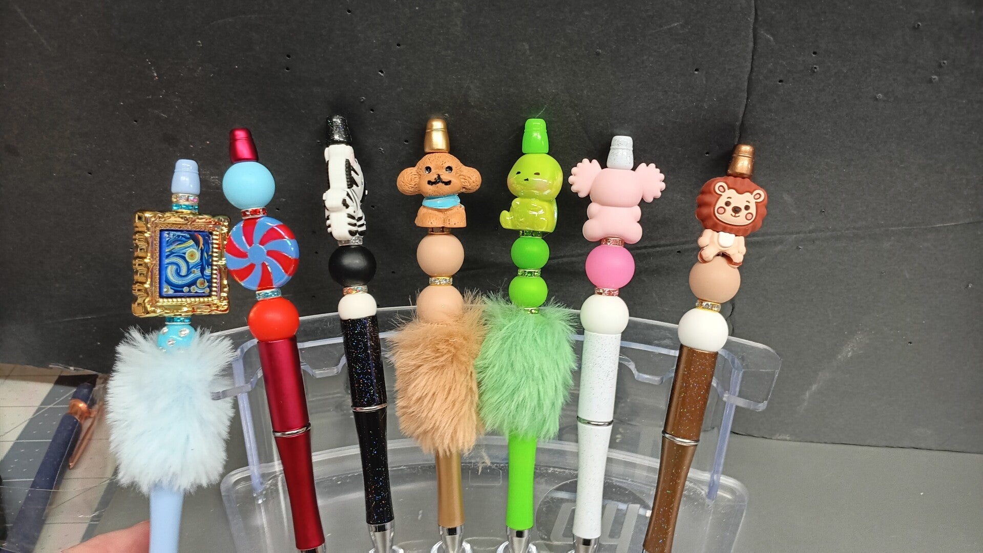 🎨 Unique Designs – From Van Gogh’s “Starry Night” to peppermint candies, zebras, lions, and koalas, each pen is topped with a colorful character or charm that sparks conversation and creativity.